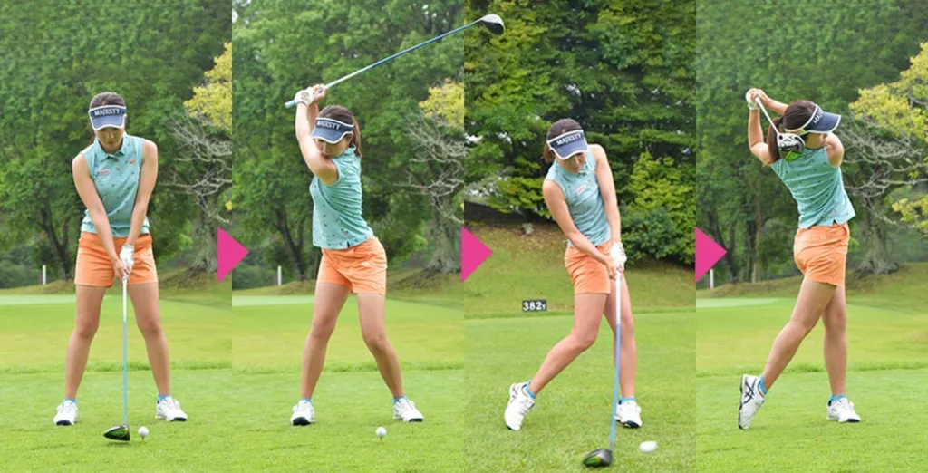 彼のスイングは、まさにこの「洗練された餅つき職人」と言えます。彼はトップで手元を高く上げて位置エネルギーを最大化し、そこから直線的にヘッドをボールへ向かわせます。